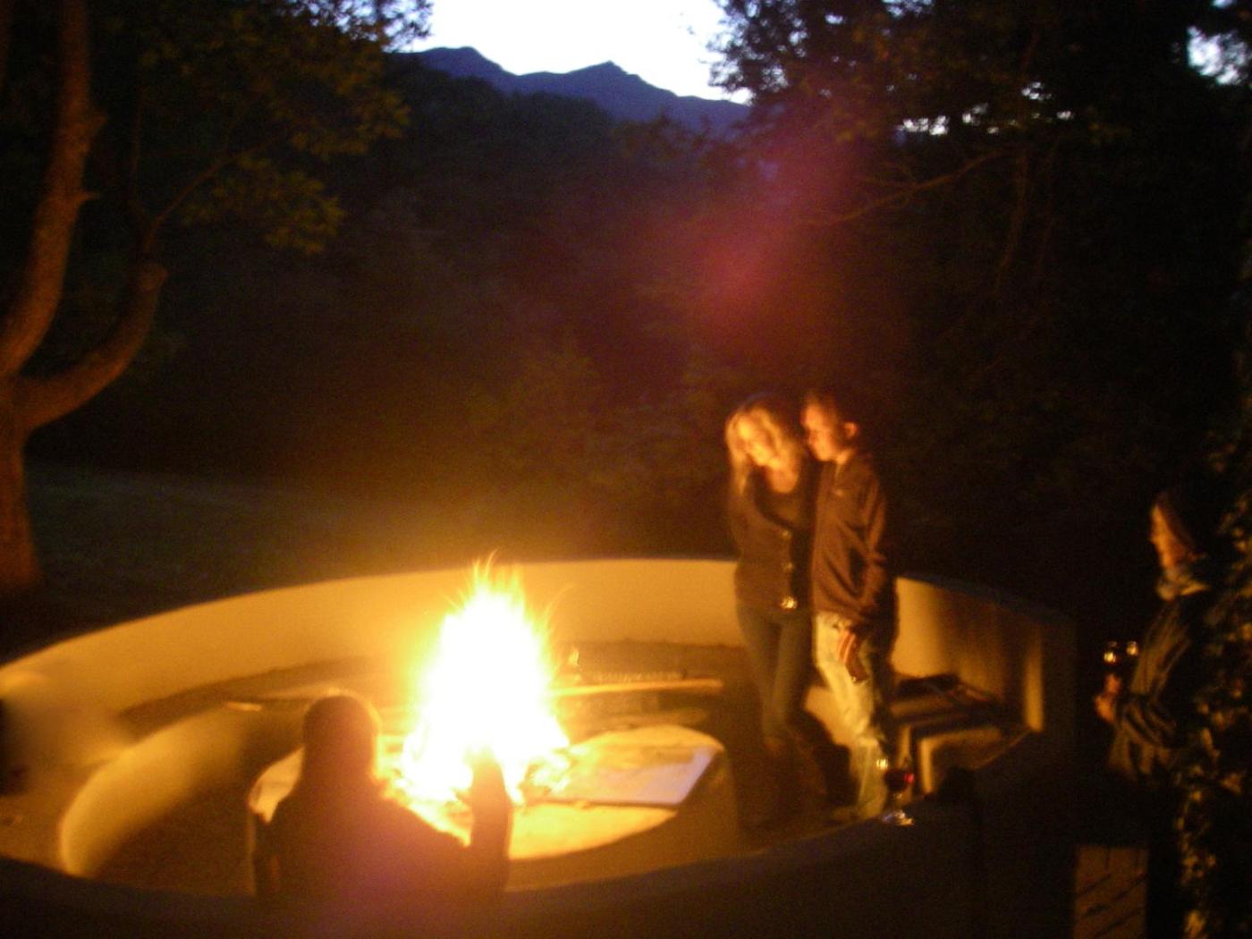 Guests can also warm themselves near outdoor fireplace after a day of cycling.