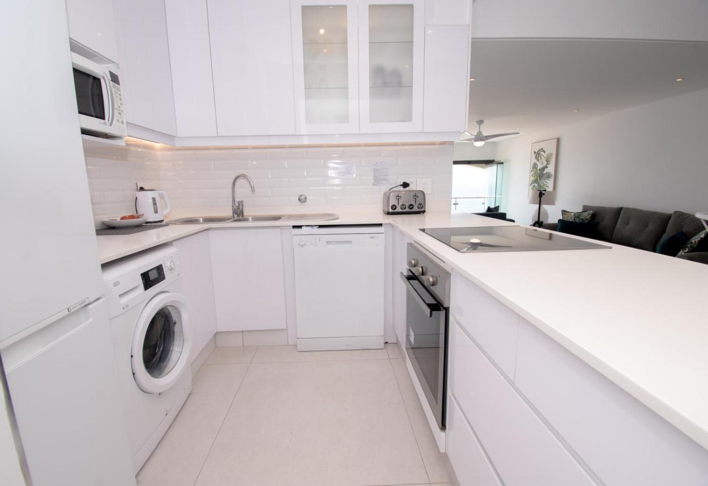 Apartment. This apartment features a pool with a view. Boasting a private entrance, this spacious apartment also features 3 bedrooms, a seating area and 2 bathrooms with a bath and a shower. Guests can make meals in the kitchen that has a stovetop, a refrigerator, a dishwasher and kitchenware. The air-conditioned apartment features a flat-screen TV with satellite channels, a washing machine, a dining area, a wardrobe as well as sea views. The unit has 5 beds.