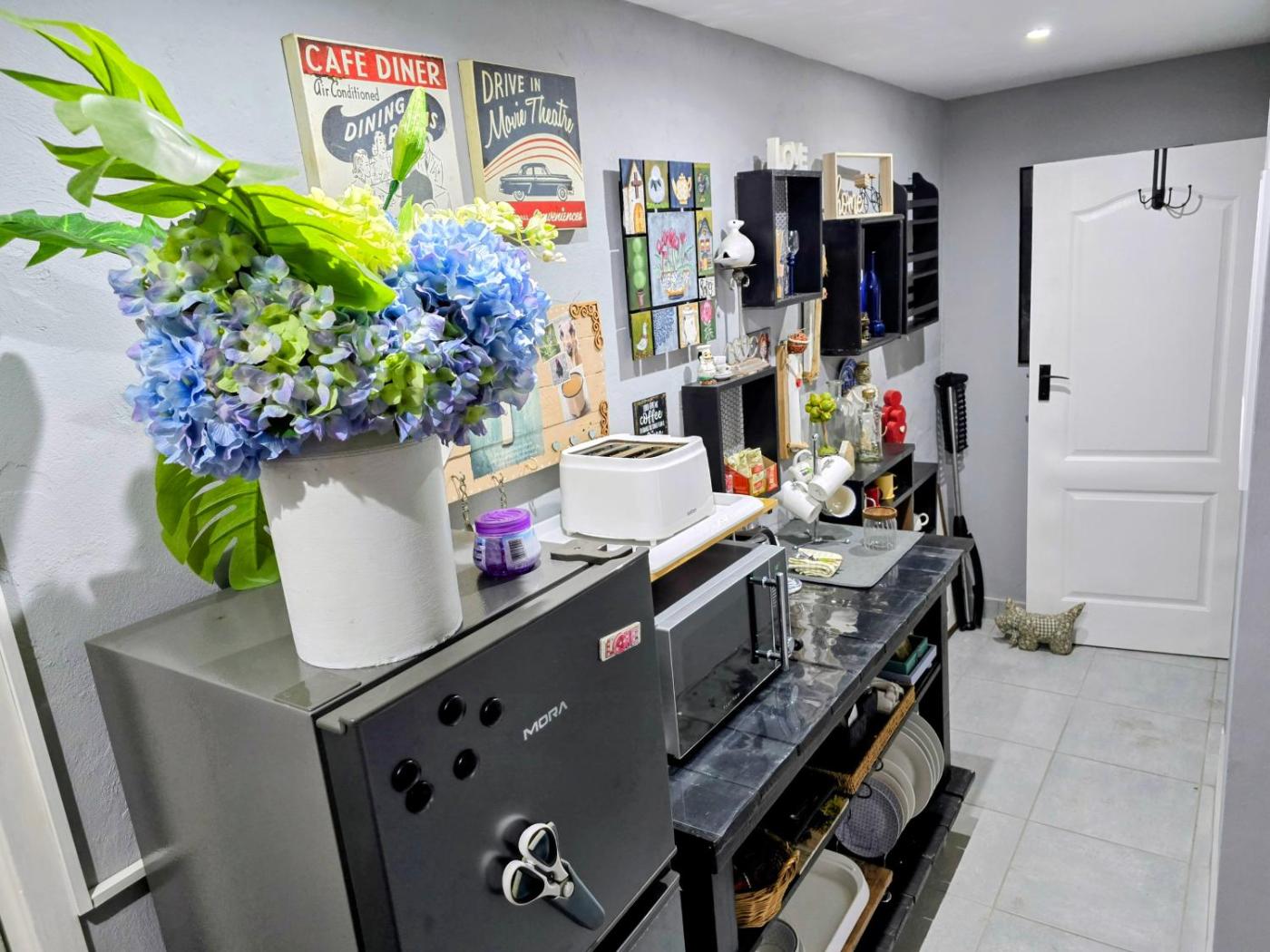 Queen Suite. Boasting a private entrance, this suite includes 1 living room, 1 separate bedroom and 1 bathroom with a shower and a hairdryer. Meals can be prepared in the well-fitted kitchenette, which is fitted with a refrigerator, a microwave and a toaster. The suite offers a flat-screen TV with streaming services, a seating area, an electric kettle, a barbecue as well as garden views. The unit has 2 beds. ;