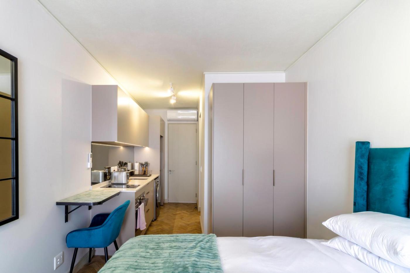 Apartment. In the well-fitted kitchen, guests will find a stovetop, a refrigerator, kitchenware and a microwave. The air-conditioned apartment offers a flat-screen TV, a washing machine, a tea and coffee maker, a seating area as well as a quiet street view. The unit offers 1 bed. ;