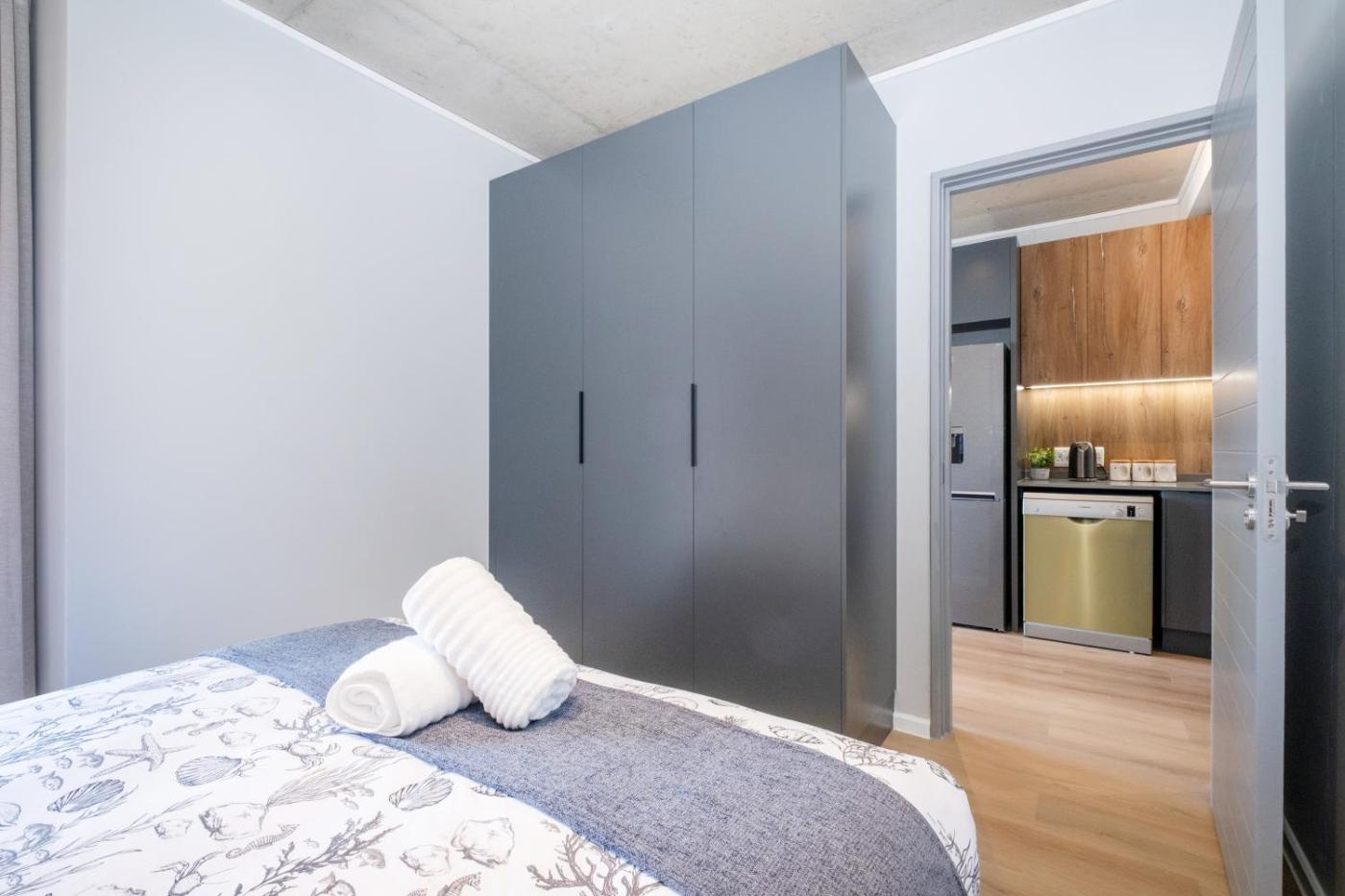 One-Bedroom Apartment with Balcony. The apartment features 1 bedroom and 1 bathroom with a shower and free toiletries. The fully equipped kitchen has a stovetop, a refrigerator, a dishwasher and kitchenware. Featuring a balcony with ancourtyard view, this apartment also provides a coffee machine and a flat-screen TV with streaming services. The unit offers 1 bed.