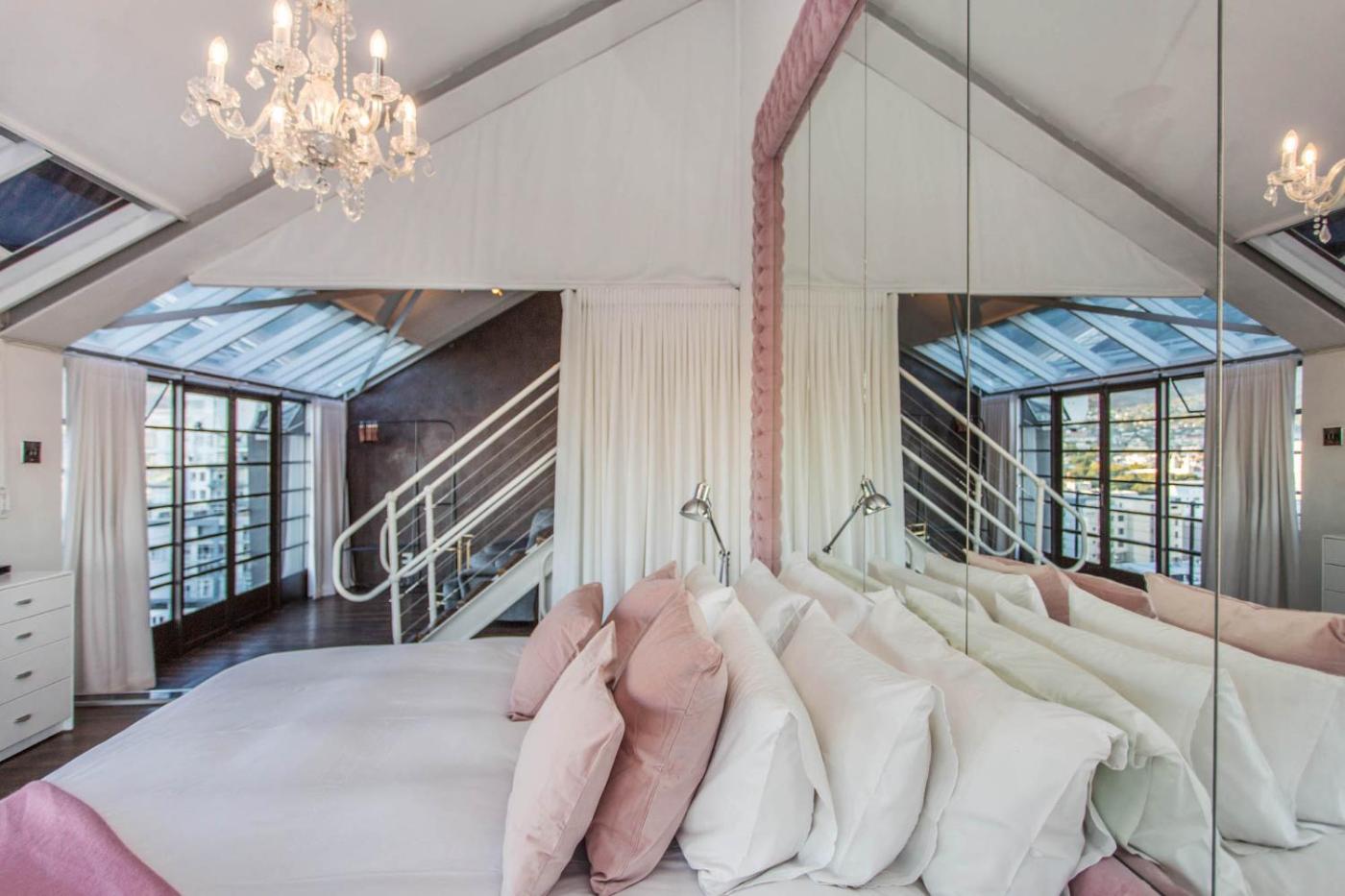 Penthouse Apartment. Offering a 270 degree view over Cape Town and Table Mountain, this spacious and open-plan loft apartment features contemporary design. It offers an open-air hot tub, a designer kitchen and a marble bathroom with double massage jet shower. Please note that this room has 1 double bed and 1 electric air mattress. ;