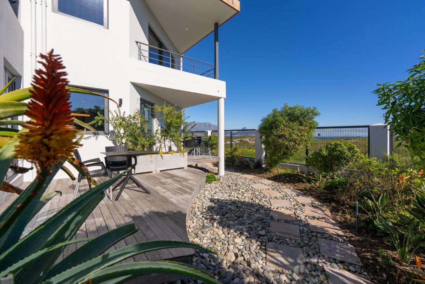 All apartments have sliding doors to the deck and unobstructed views of the Table Mountain and or the ocean.bathrooms are spacious and exclusively tiled in natural stone. The floors have a warm, wooden look. Kitchens are fully equipped, alternatively there are also restaurants and cafés nearby.