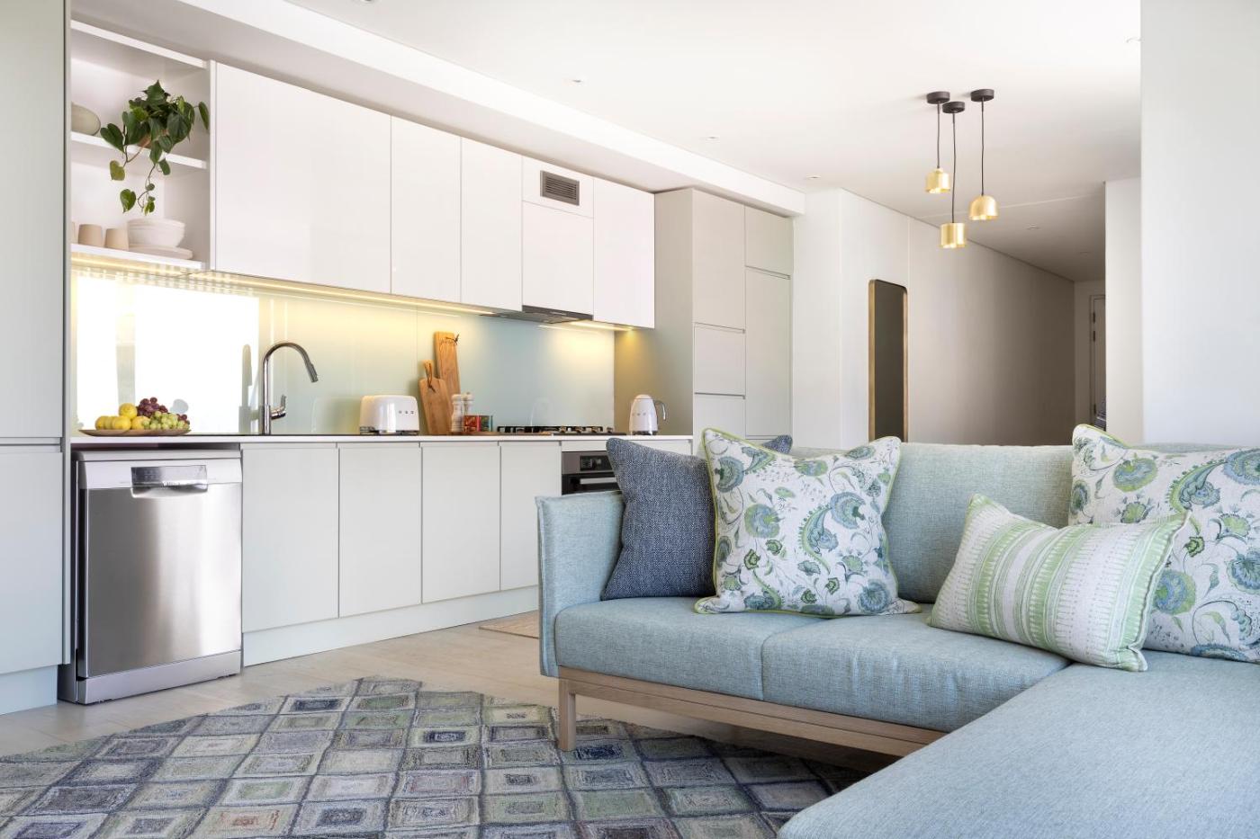 One-Bedroom Superior Apartment. This spacious apartment is comprised of 1 living room, 1 separate bedroom and 1 bathroom with a walk-in shower and free toiletries. Guests can make meals in the kitchen that comes with a stovetop, a refrigerator, a dishwasher and kitchenware. The air-conditioned apartment offers a flat-screen TV with streaming services, a washing machine, a private entrance, soundproof walls as well as mountain views. The unit offers 1 bed. ;