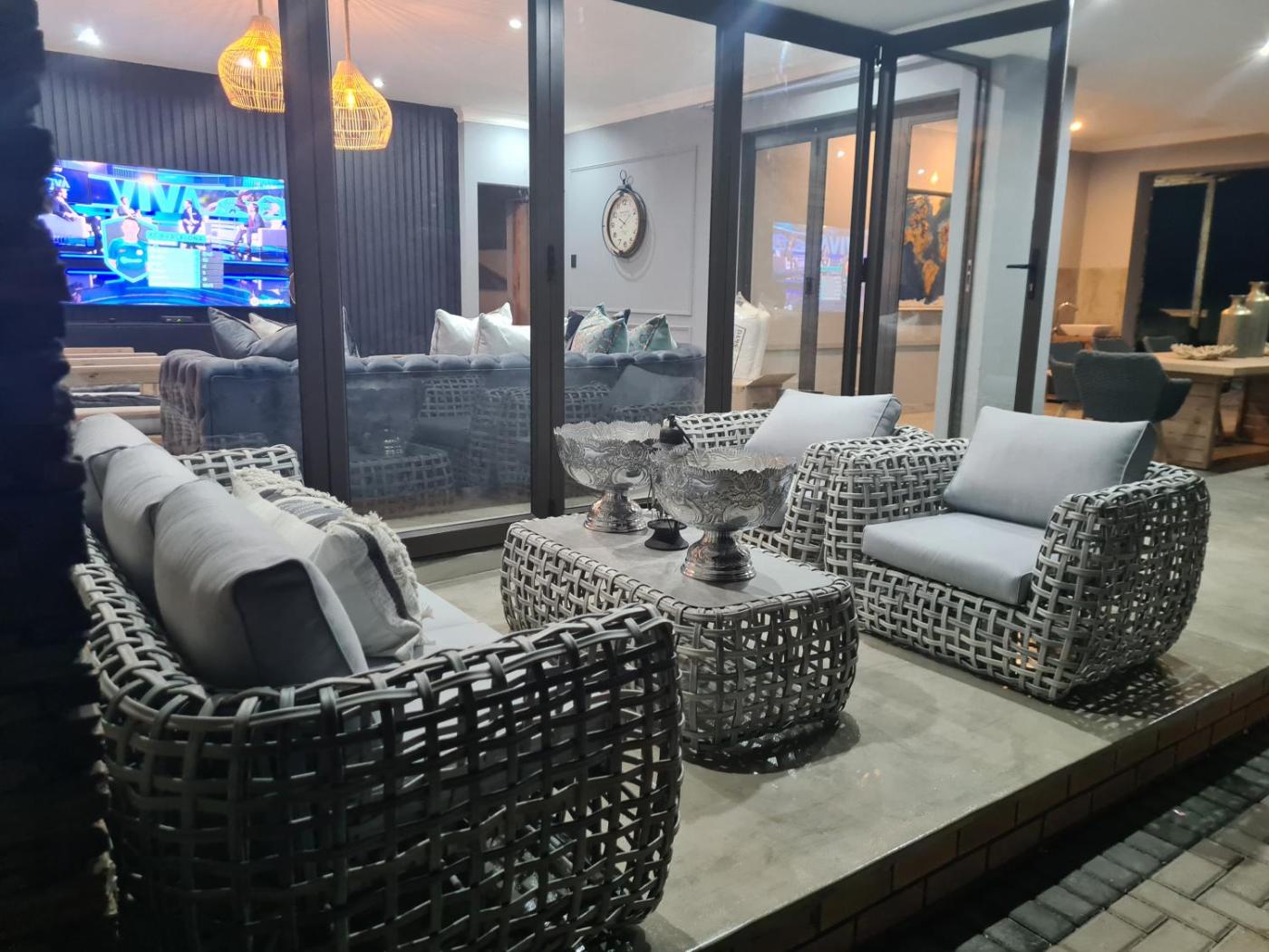 Boasting a balcony with garden views, a garden and a shared lounge, Maratongfontein Euphoria Villa can be found in Naboomspruit, close to Euphoria Golf Estate and Hydro and 9.2 km from Anglo Boer War Memorial. There is an in-house restaurant, plus free private parking and free WiFi are available. The villa has an outdoor fireplace and a hot tub.