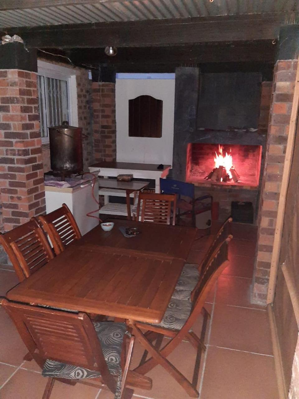 For guests with children, the holiday home provides a childrens playground. Guests can also warm themselves near outdoor fireplace after a day of fishing.