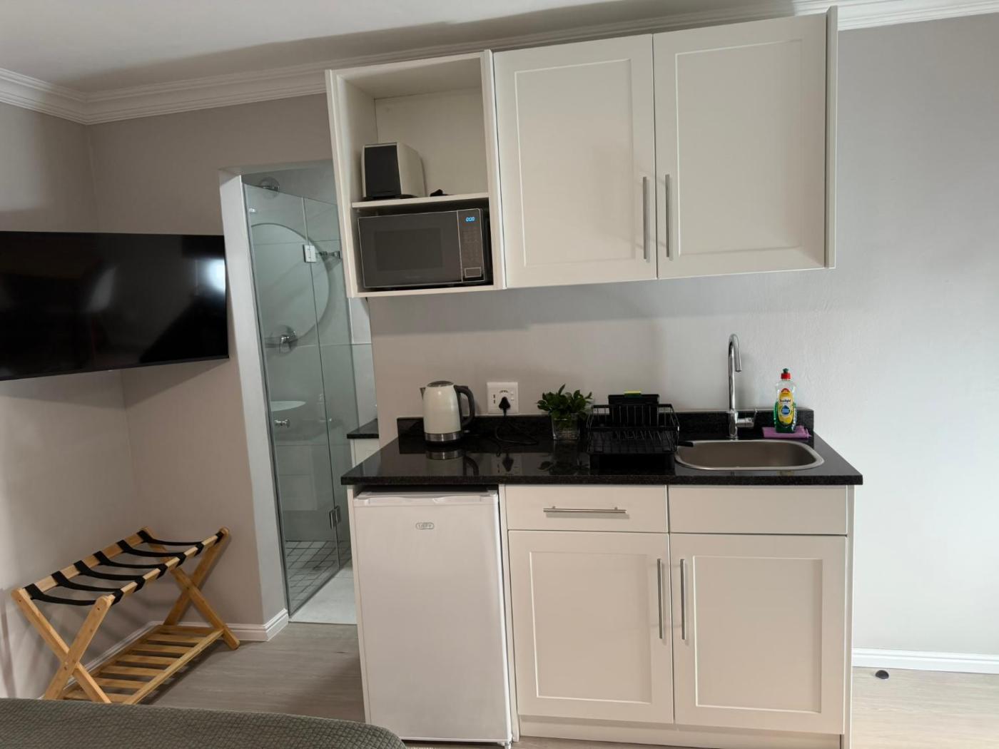 Studio. The well-equipped kitchenette features a refrigerator, kitchenware, a microwave and a toaster. This air-conditioned studio includes a flat-screen TV with streaming services and a private bathroom. The unit offers 1 bed.