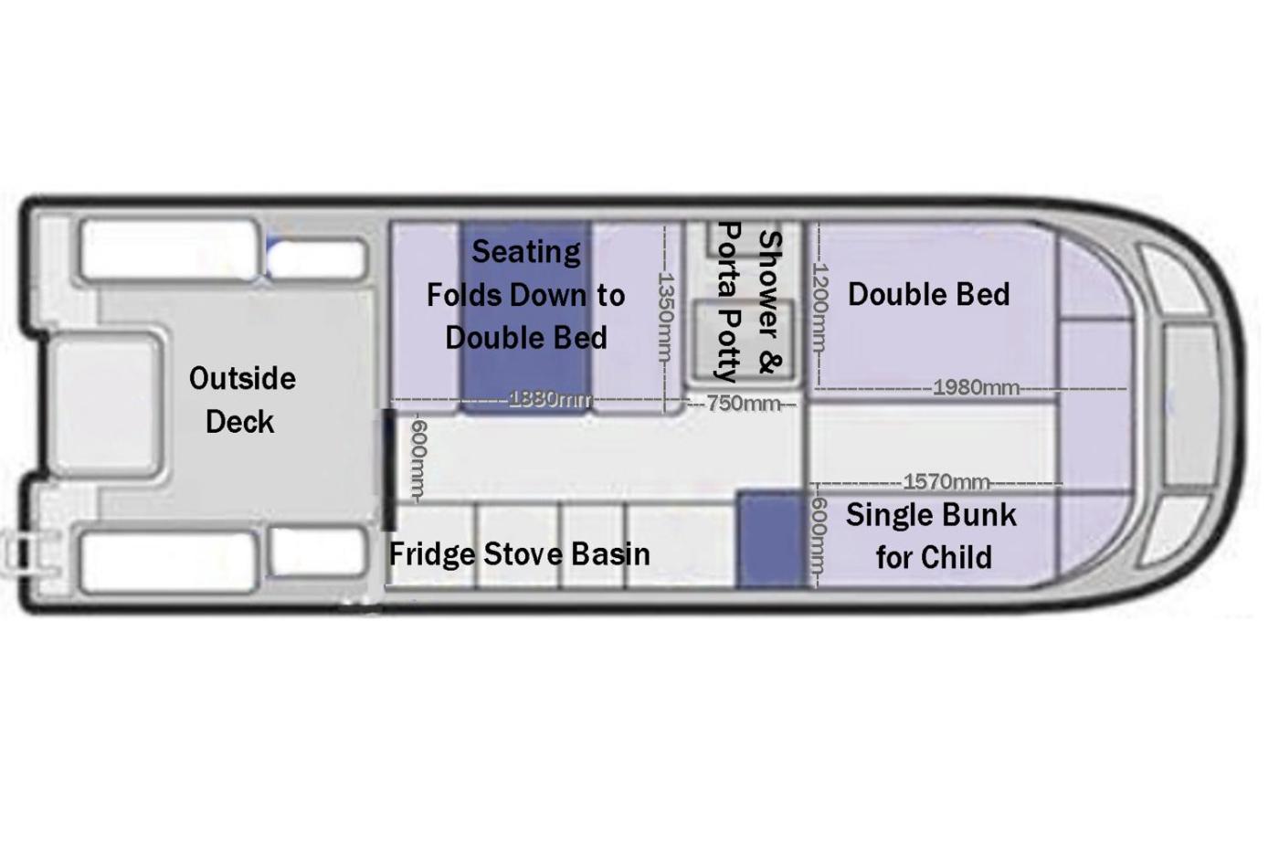 The boat is composed of 1 separate bedroom, a living room, a fully equipped kitchenette with an oven and fridge, and 1 bathroom. The accommodation is non-smoking.