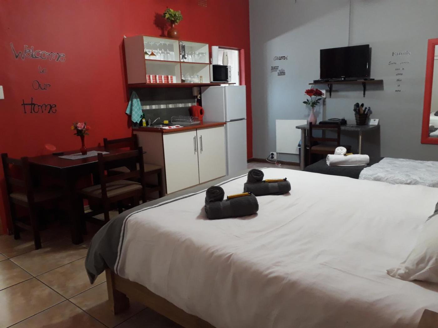 All units at the guest house come with air conditioning, a seating area, a flat-screen TV with satellite channels, a kitchen, a dining area, a safety deposit box and a private bathroom with a walk-in shower, slippers and a hair dryer. A microwave, a toaster and fridge are also offered, as well as a kettle. At the guest house, units are equipped with bed linen and towels.